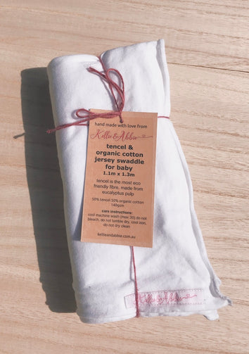 • Tencel & organic cotton jersey swaddle, keeping bub feeling safe and secure (1.2m x 1.2m)